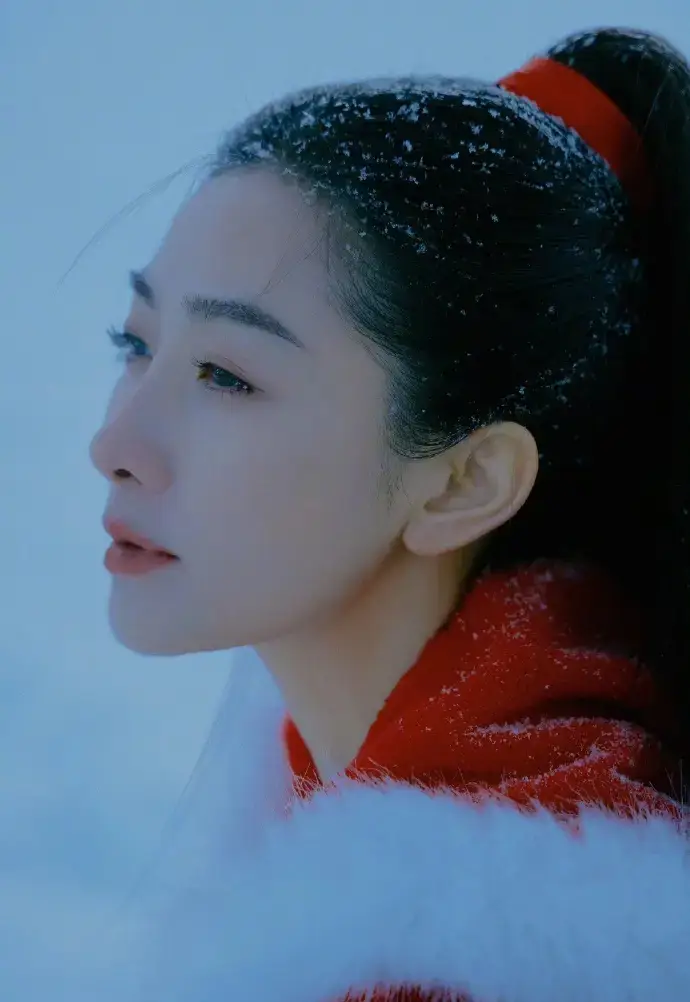 冰天雪地的一襲紅衣,寒冷的溫度也抵擋不住陶昕然的美。