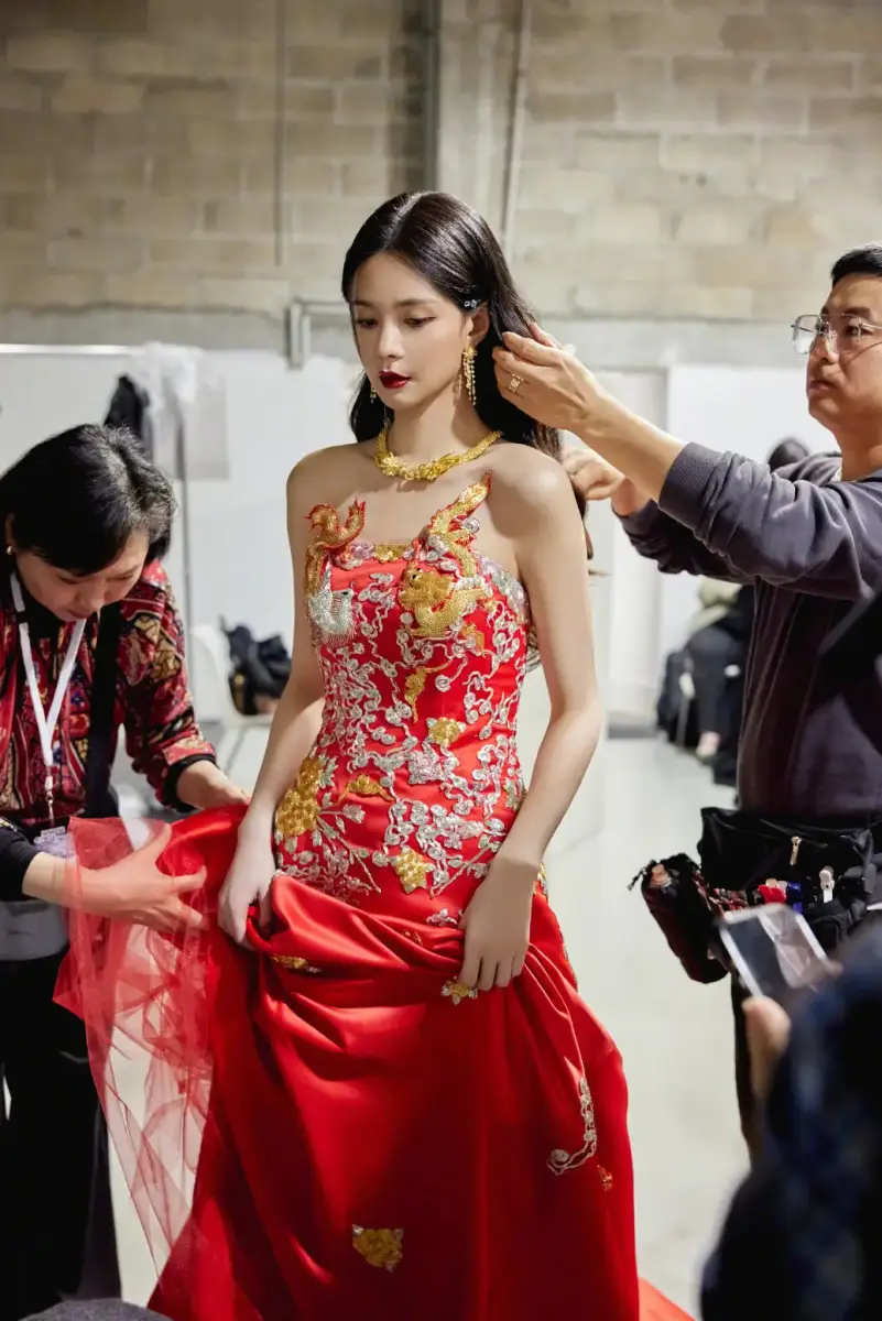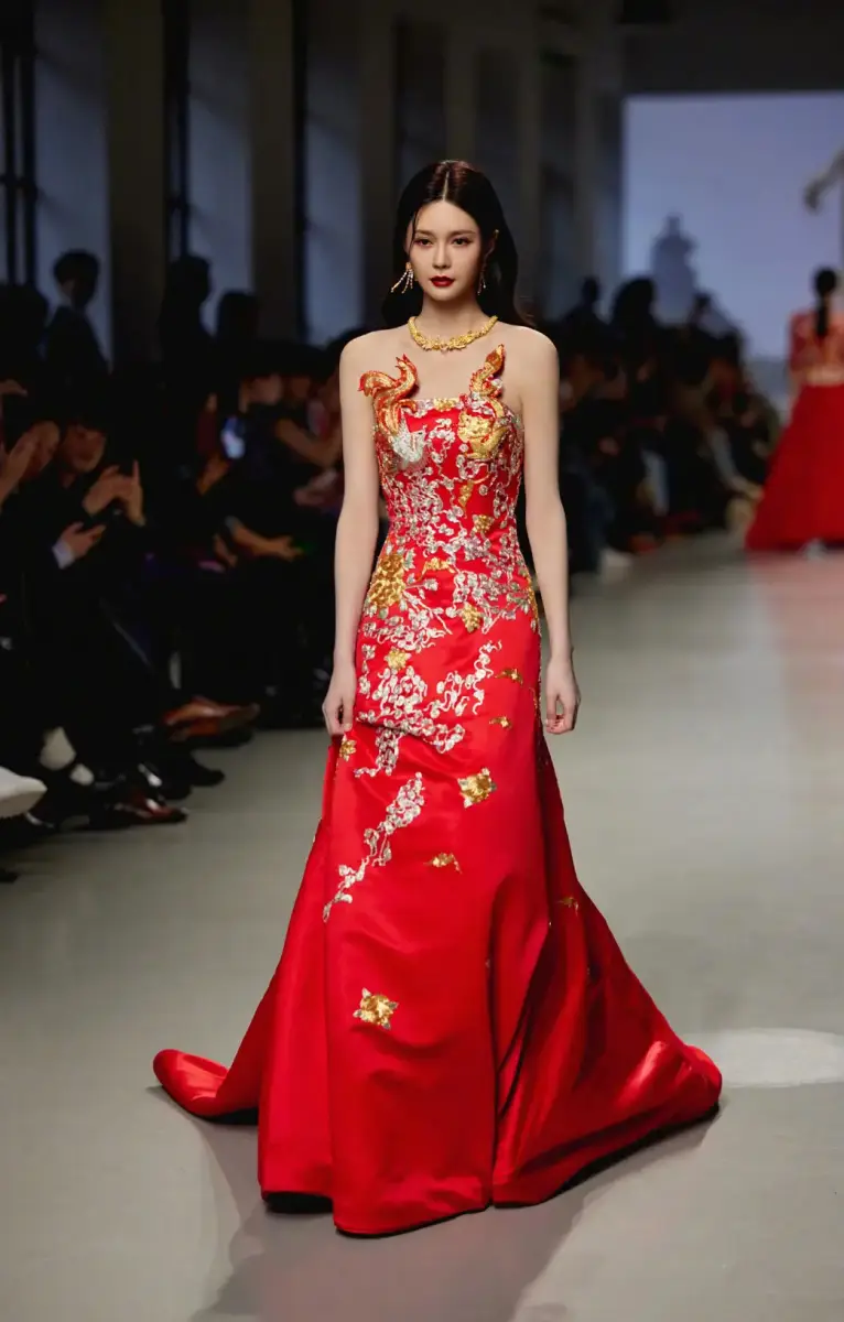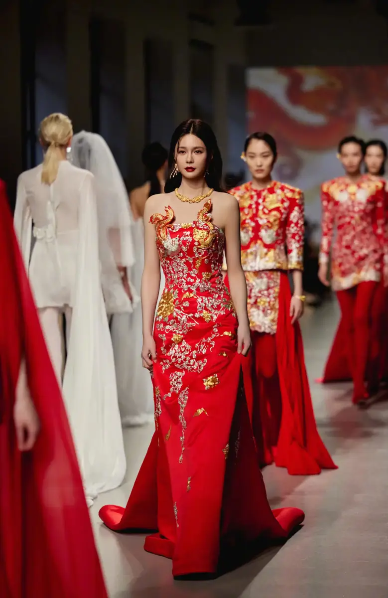 近日,沈夢辰在社交平臺上發(fā)布了一組走秀美圖。沈夢辰(明星經(jīng)紀(jì)公司)一襲龍紋正紅色旗袍,彰顯新中式魅力。