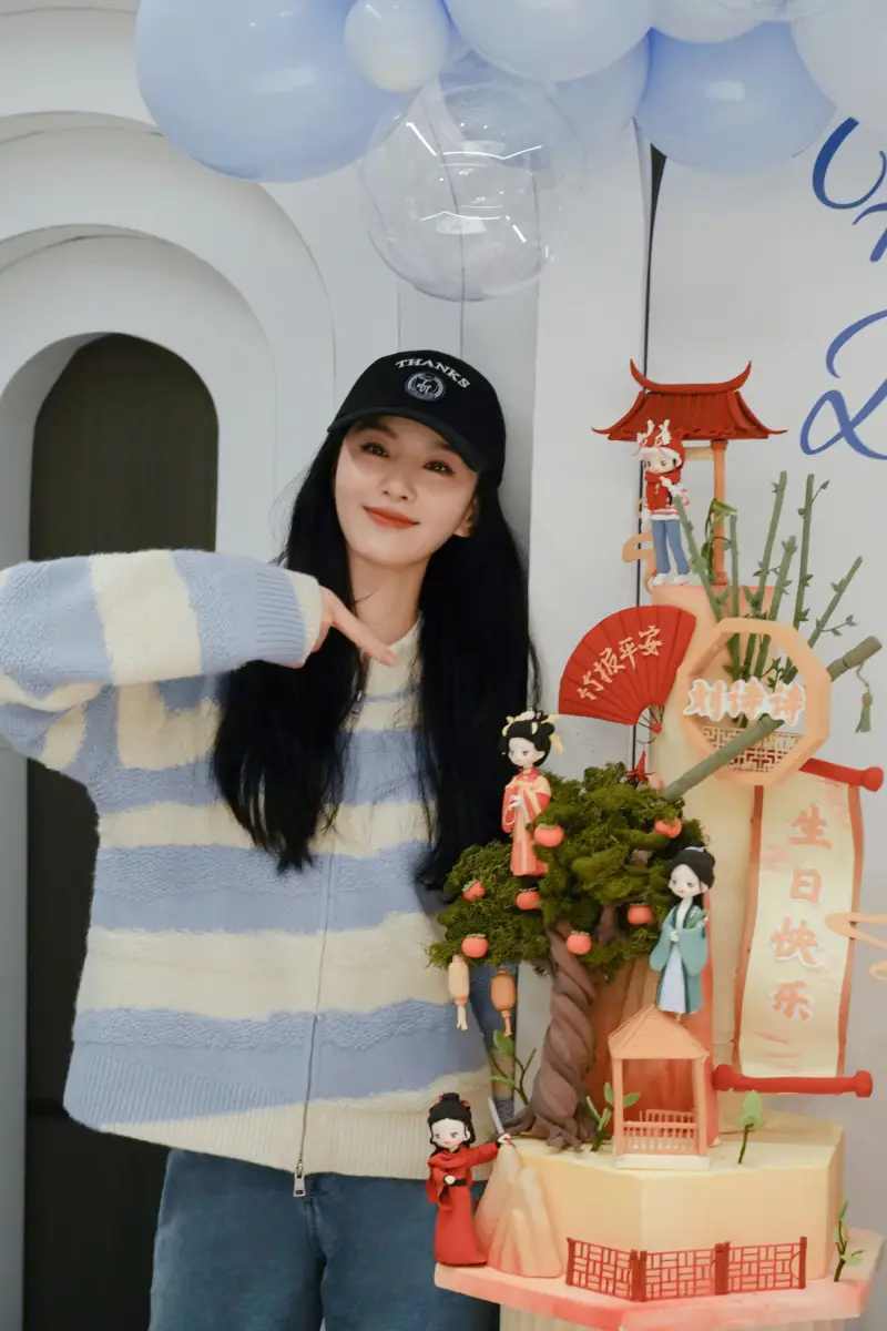 劉詩詩37歲慶生照釋出 穿藍白毛衣切蛋糕溫馨樸素