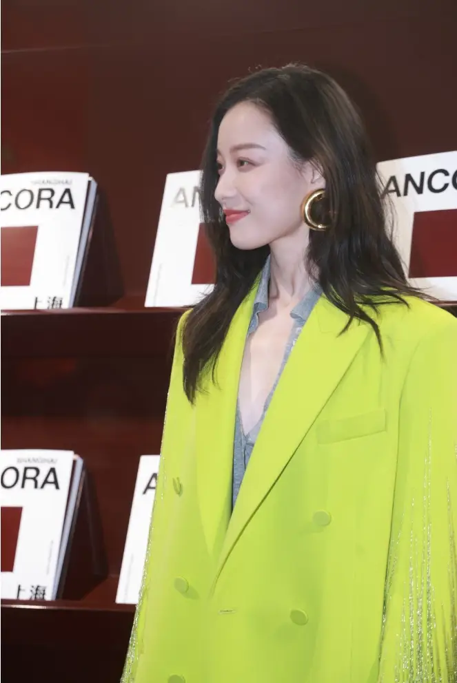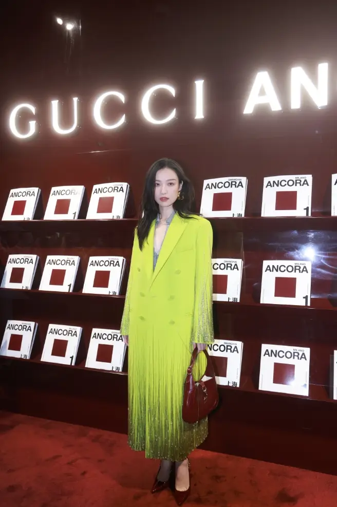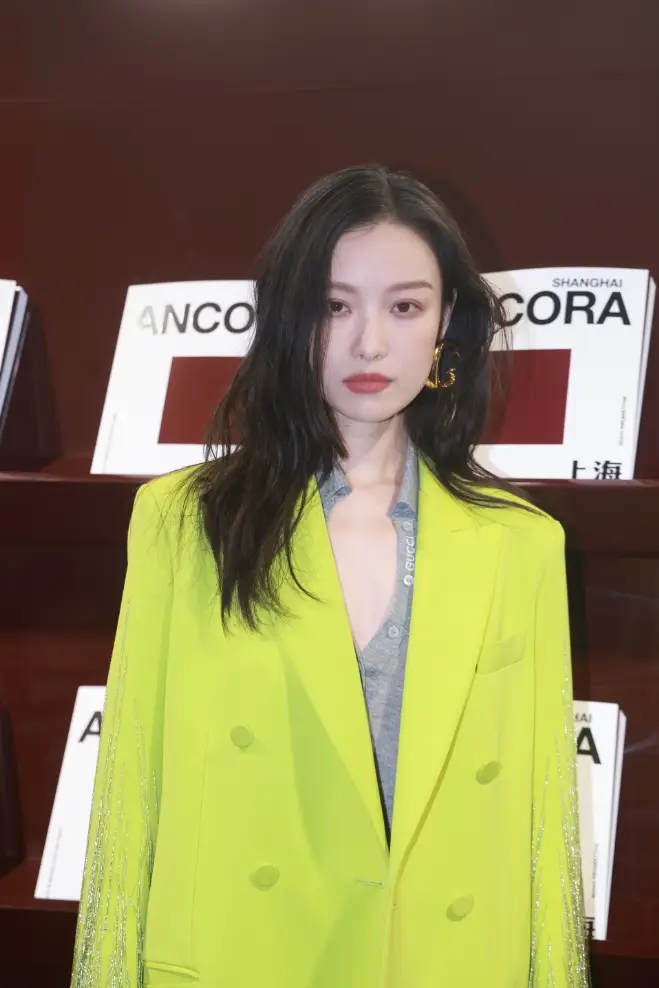倪妮身穿熒光綠流蘇大衣,氣場全開,優(yōu)雅高貴。