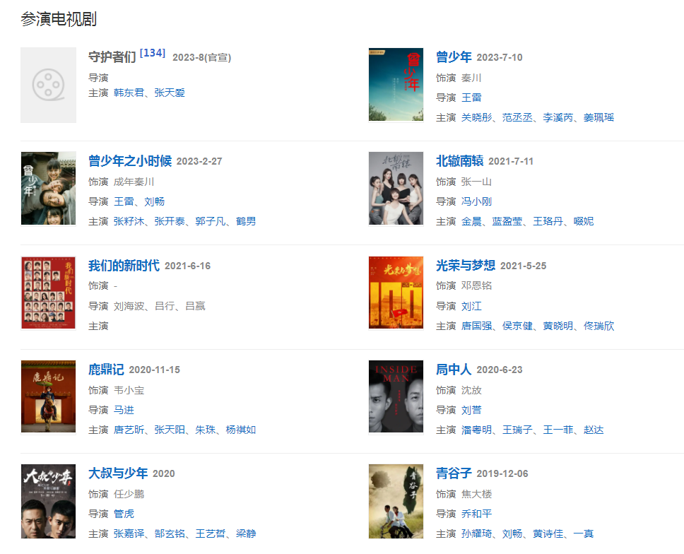 代表作品:家有兒女、余罪、柒個(gè)我、春風(fēng)十里不如你