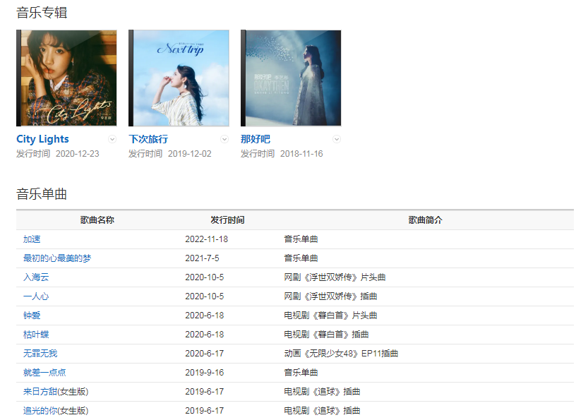 2020年,主演江湖闖關追愛劇《暮白首》和古裝言情勵志劇《浮世雙嬌傳》;同年,發(fā)行音樂EP《City Lights》。