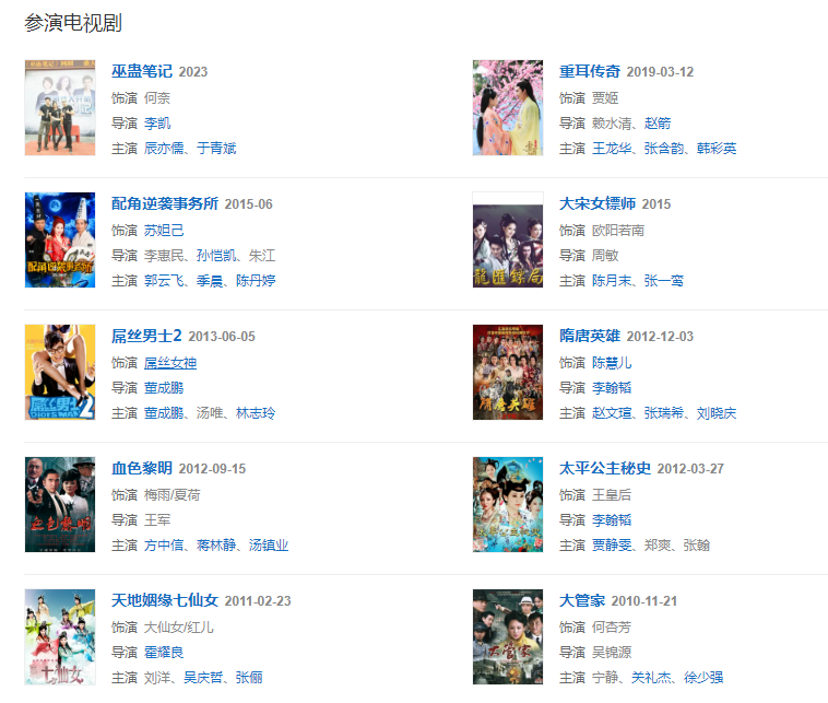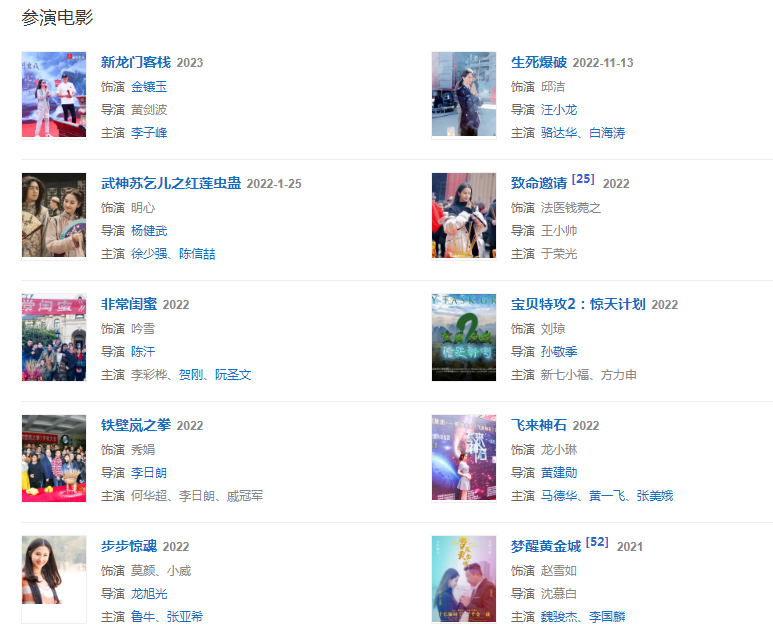 代表作品:隋唐英雄、蝴蝶之吻、藍色金魚、鉆石豪門、新龍門客棧、一路驚喜、迷魂之密室逃脫
