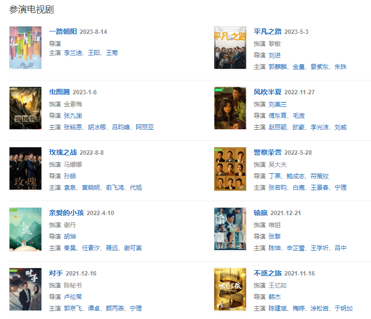 2021年8月18日,參演的古裝電視劇《周生如故》播出;9月9日,參演的電視劇《雙探》播出;11月16日,其主演的電視劇《不惑之旅》在浙江衛(wèi)視播出 ;12月16日,特別出演的當(dāng)代都市諜戰(zhàn)劇《對手》在央視八套播出;參演電視劇《輸贏》。