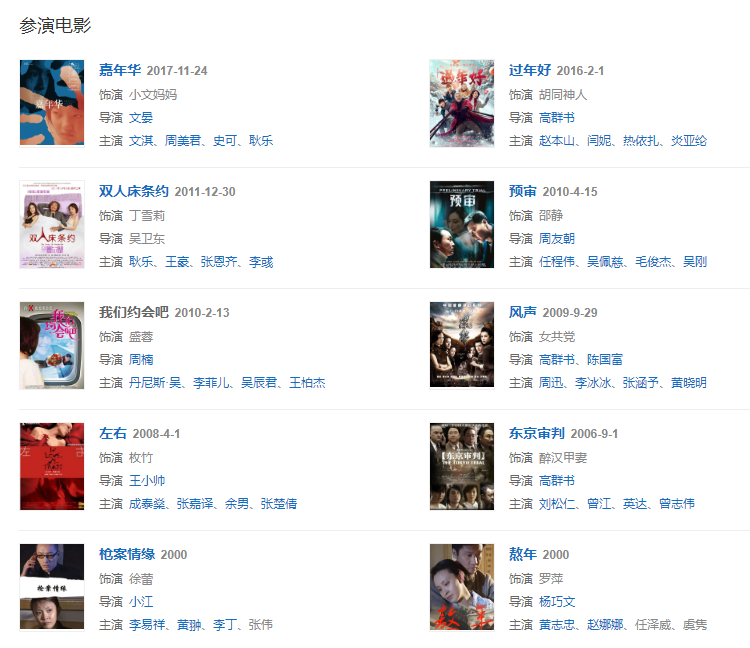 代表作品:征服、左右、我的團(tuán)長我的團(tuán)、雪花那個飄、向東是大海、推拿、大唐榮耀、獵毒人